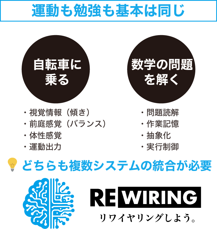 誰でも最初は自転車に乗れなかったように、感覚神経と運動神経をつなぐような訓練が勉強においても必要になります。